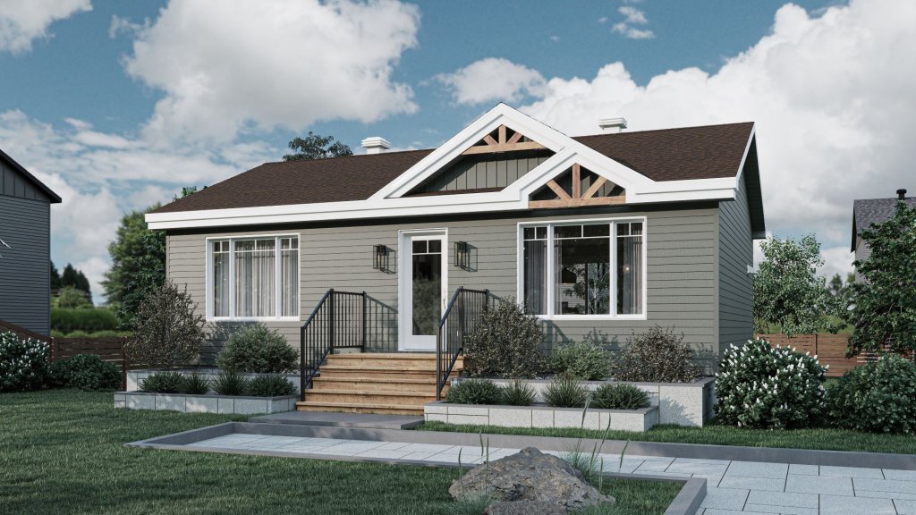 This classic contemporary bungalow includes two generously sized bedrooms that are easy to furnish because of their square configuration. The kitchen layout offers a practical and optimized solution for hassle‑free daily living.